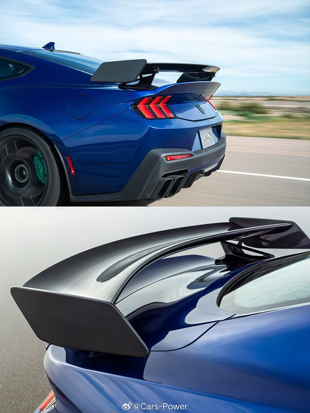 最强🇺🇸肌肉车没有之一福特发布Mustang Dark Horse SC🚀🚀🚀⚙️⚙️⚙️5.2V8机械增压+7速双离合 👉前进气口尺寸比常规版Dark Horse增大60%引擎盖开口进一步提升前端气流管理和散热效率(人家这个是真的有用的挖孔,不是某品牌那种骗人的)👉鸭尾扰流板和大尾翼可在290 km/h时产生超过280 公斤下压力
