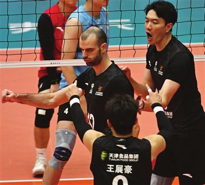 本报讯(记者谢晨摄影孙震)三局完胜,成功“复仇”,排超男排A级联赛常规赛第9轮,天津食品集团男排昨天主场3:0(25:22、25:20、25:20)横扫广东男排,报了常规赛次轮客场负于对手的“一箭之仇”。