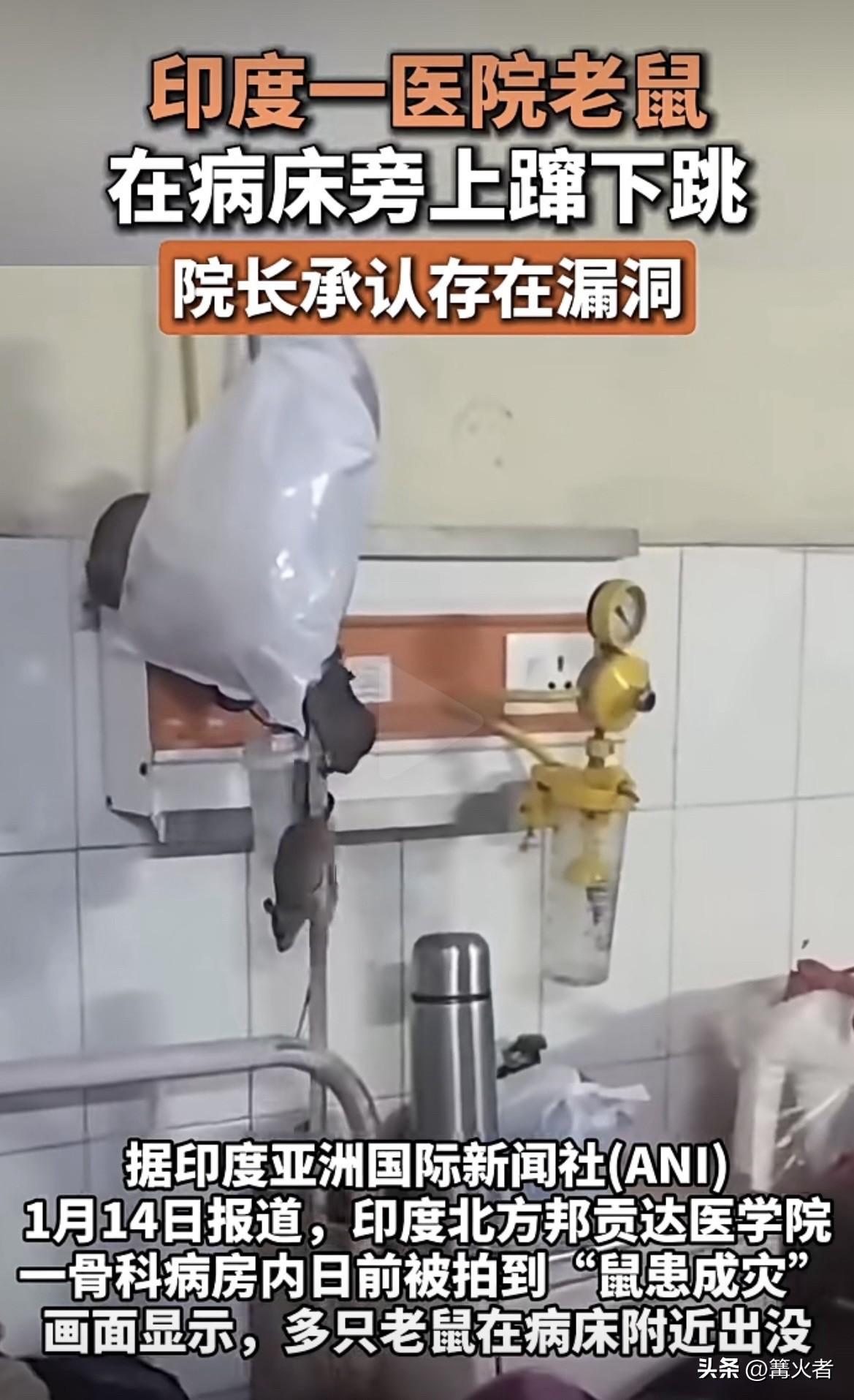 印度医院病房内,老鼠沿着氧气管道乱跑,旁边病床上还躺着病人。20多只老鼠随意跑动,甚至咬氧气管,跟医护人员说,还被要求“适应一下”,这画面想想都恐怖