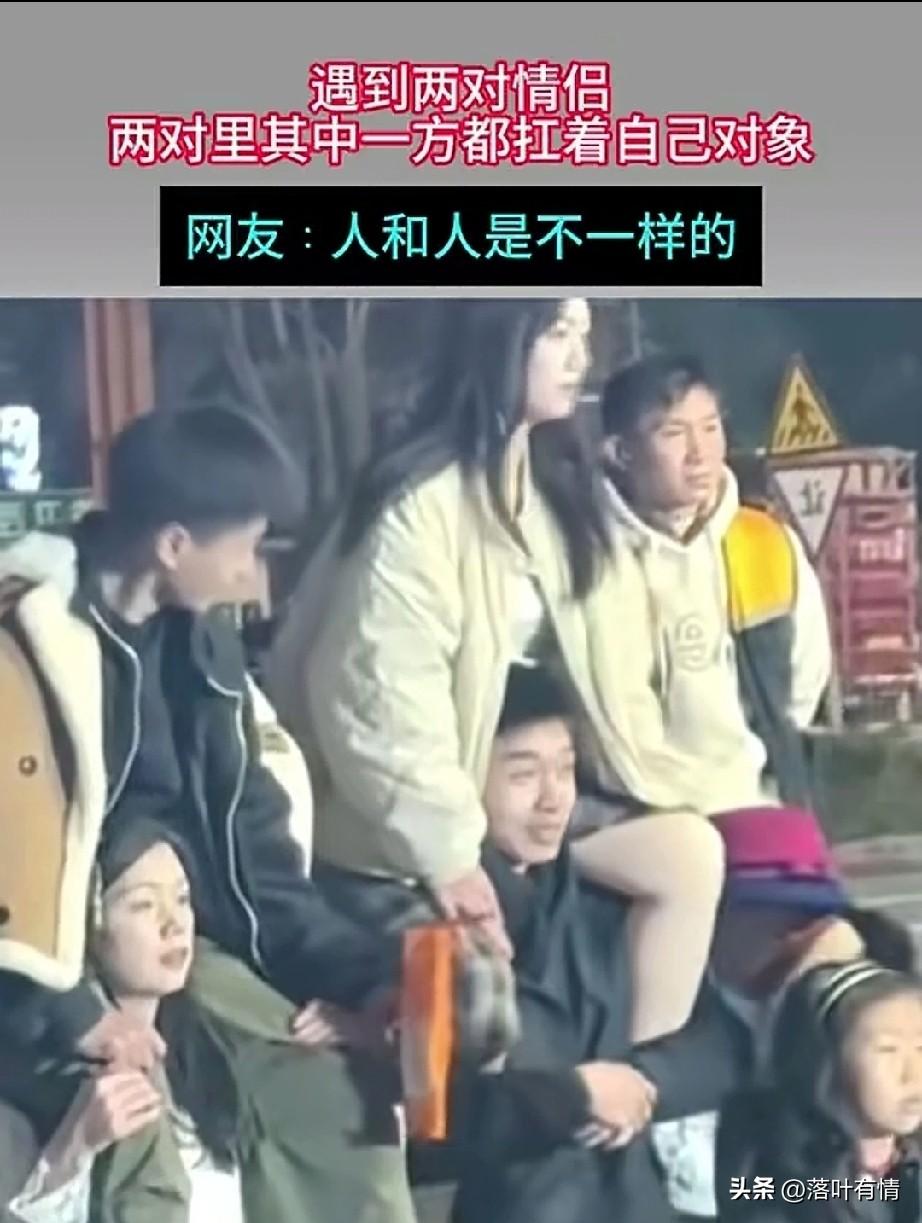大街上看表演遇到两对情侣, 画风非常的不一样, 其中一个女生坐在了她男朋友的肩膀上,个子这么大,腿也这么长, 长得确实非常的好, 但是骑在男朋友的肩膀上秀恩爱不太好吧,他旁边的画风更奇特, 居然是女的让他的矮小男朋友骑在她的肩膀上,这两对情侣简直是完全相反, 旁边的男生看着身边的情侣, 可能让他感觉哪里不对, 突然意识到自己有点儿可悲, 明明都是谈朋友, 为啥自己的女朋友在他脖子上, 明明自己的女朋友也很高大, 看得出来他很羡慕旁边的男生, 或许他也想体验一下在女朋友脖子上的感觉,骑在女朋友脖子上的男生, 是上辈子拯救了银河系吗? 他的女朋友怎么那么能宠溺他? 大家觉得为什么同人不同命呢? 情侣 情侣街景 情侣合影 情侣实拍 街头情侣照