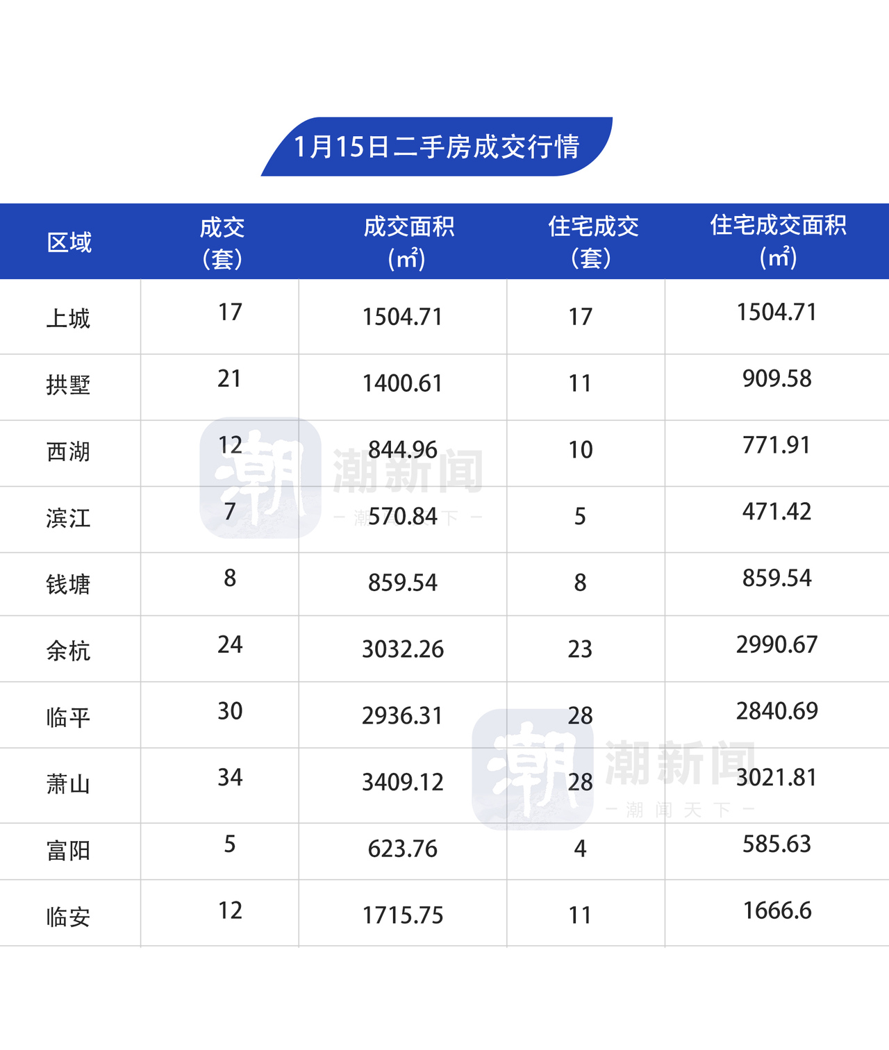 1月15日,杭州市区二手房成交170套