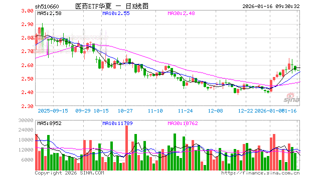 1月16日,医药ETF华夏(510660)开盘涨0.00%,报2.559元。医药ETF华夏(510660)重仓股方面,药明康德开盘涨0.02%,恒瑞医药涨0.28%,联影医疗涨0.14%,片仔癀涨0.12%,复星医药涨0.14%,百济神州跌0.36%,百利天恒涨1.15%,甘李药业涨0.36%,惠泰医疗涨0.23%,艾力斯涨0.56%。