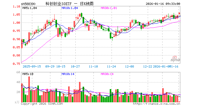 1月16日,科创创业50ETF(588390)开盘涨0.67%,报1.049元。科创创业50ETF(588390)重仓股方面,宁德时代开盘涨1.20%,新易盛涨2.53%,中际旭创涨1.75%,中芯国际涨2.46%,寒武纪涨0.35%,阳光电源涨1.44%,海光信息涨1.08%,澜起科技涨2.14%,胜宏科技涨1.04%,汇川技术涨0.41%。