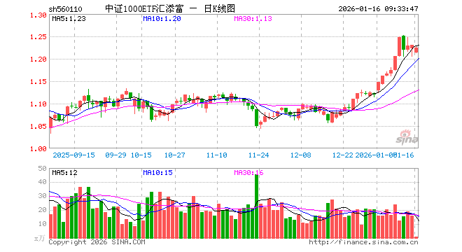 1月16日,中证1000ETF汇添富(560110)开盘跌1.30%,报1.214元。中证1000ETF汇添富(560110)重仓股方面,华虹公司开盘涨2.21%,和而泰涨1.04%,欧菲光涨0.27%,银轮股份跌0.77%,剑桥科技涨2.06%,方正科技涨1.11%,东芯股份涨1.59%,香农芯创跌0.32%,安集科技涨0.80%,科华数据涨1.50%。