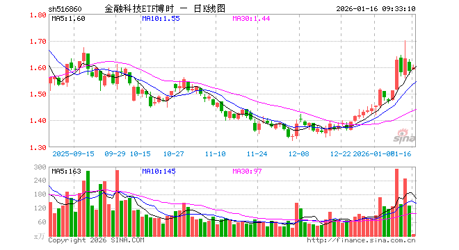 1月16日,金融科技ETF博时(516860)开盘涨0.25%,报1.590元。金融科技ETF博时(516860)重仓股方面,同花顺开盘涨1.68%,东方财富涨0.96%,指南针涨1.53%,恒生电子跌0.55%,润和软件跌2.18%,东华软件涨0.00%,银之杰涨1.74%,新大陆涨0.82%,广电运通跌0.22%,大智慧涨1.04%。