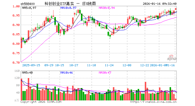 1月16日,科创创业ETF嘉实(588400)开盘涨0.51%,报0.979元。科创创业ETF嘉实(588400)重仓股方面,宁德时代开盘涨1.20%,新易盛涨2.53%,中际旭创涨1.75%,中芯国际涨2.46%,寒武纪涨0.35%,阳光电源涨1.44%,海光信息涨1.08%,澜起科技涨2.14%,胜宏科技涨1.04%,汇川技术涨0.41%。