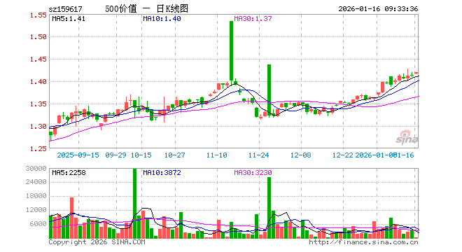 1月16日,中证500价值ETF华夏(159617)开盘涨0.35%,报1.416元。中证500价值ETF华夏(159617)重仓股方面,中创智领开盘涨1.40%,中国外运涨0.68%,雅戈尔涨0.27%,韵达股份涨0.14%,太阳纸业涨0.45%,隧道股份涨0.15%,九州通跌0.19%,环旭电子涨1.96%,浙江龙盛涨0.09%,浙富控股涨0.22%。