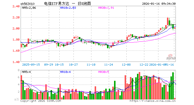 1月16日,电信ETF易方达(563010)开盘涨0.00%,报1.992元。电信ETF易方达(563010)重仓股方面,新易盛开盘涨2.53%,中际旭创涨1.75%,中国联通涨0.19%,中国移动涨0.03%,中国电信涨0.16%,银之杰涨1.74%,中国卫通涨0.08%,中兴通讯涨0.40%,天孚通信涨1.35%,紫光股份涨1.15%。