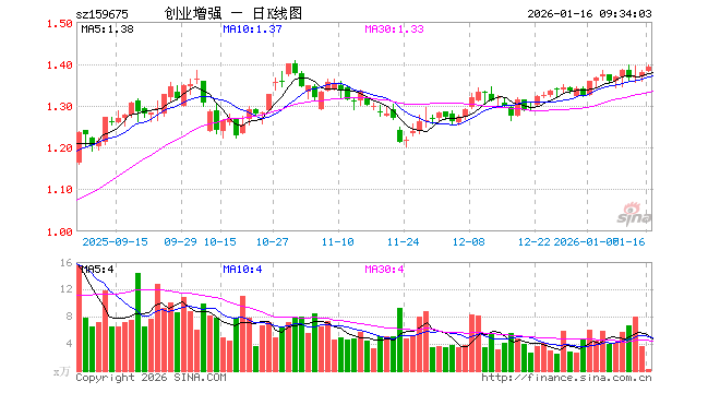 1月16日,创业板增强ETF(159675)开盘涨0.07%,报1.381元。创业板增强ETF(159675)重仓股方面,宁德时代开盘涨1.20%,新易盛涨2.53%,中际旭创涨1.75%,东方财富涨0.96%,阳光电源涨1.44%,胜宏科技涨1.04%,汇川技术涨0.41%,亿纬锂能涨0.53%,迈瑞医疗涨0.21%,同花顺涨1.68%。