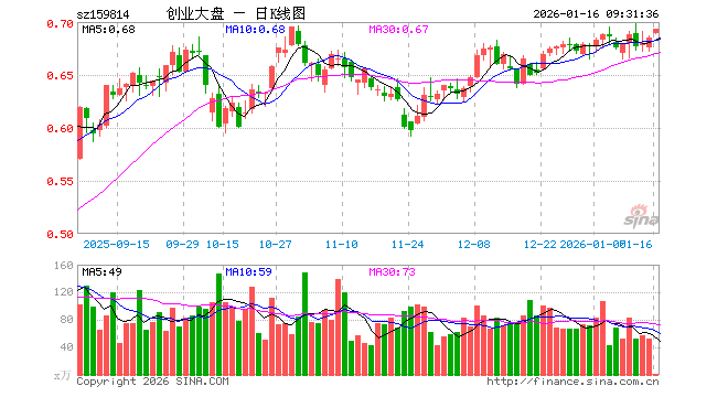 1月16日,创业大盘ETF(159814)开盘涨0.58%,报0.689元。创业大盘ETF(159814)重仓股方面,宁德时代开盘涨1.20%,中际旭创涨1.75%,东方财富涨0.96%,新易盛涨2.53%,阳光电源涨1.44%,胜宏科技涨1.04%,汇川技术涨0.41%,迈瑞医疗涨0.21%,亿纬锂能涨0.53%,天孚通信涨1.35%。