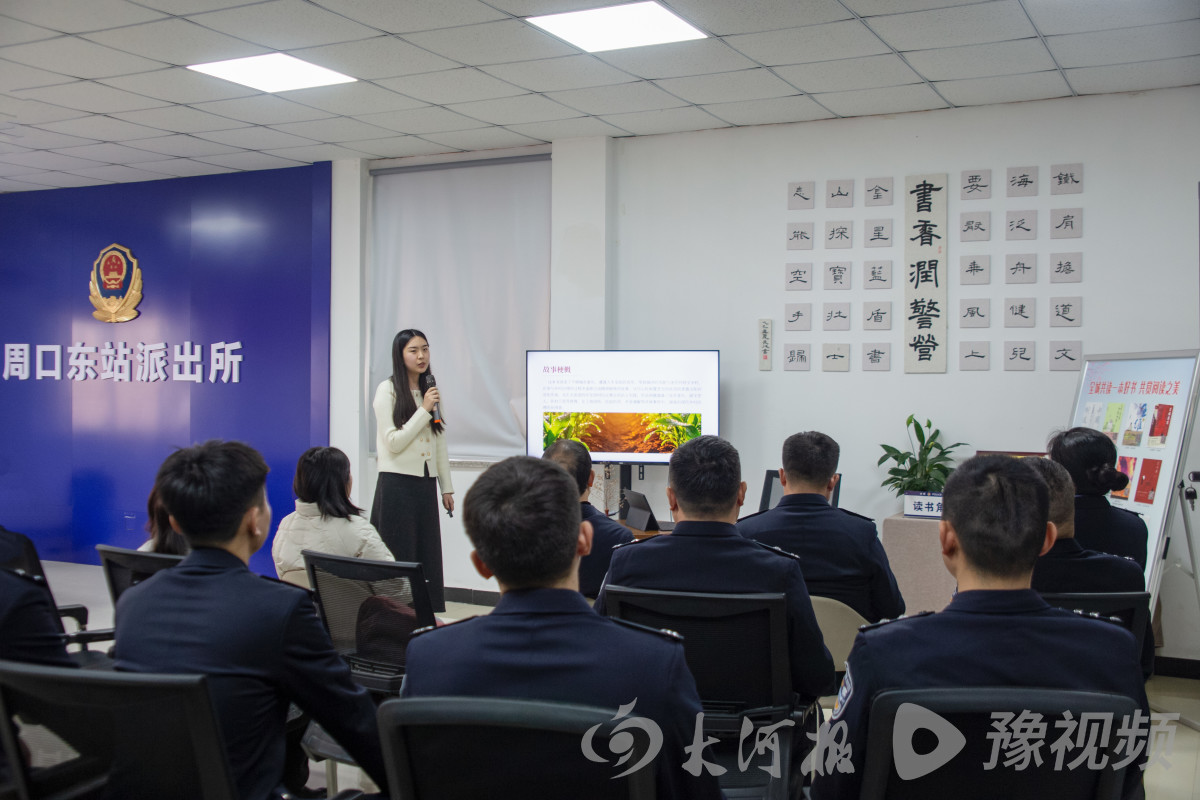 活动中,图书馆安妮、王睿颖两位馆员声情并茂地分别推荐了《人世间》《宝水》等优秀文学作品,并分享了阅读体会。《人世间》以深邃的笔触描绘普通人在时代洪流中的坚韧与温情,启迪民警感悟家国情怀与责任担当;《宝水》则聚焦乡村现实与人性光芒,有助于民警在阅读中深化对社情民意的理解,滋养为民服务的初心。馆员的精彩推荐,引导民警感受文学魅力与人生哲理。紧接着,全体人员共同参与了“扫码共读”体验环节,通过手机同步朗读精选篇章,在齐声诵读中感受文字的力量与集体阅读的独特氛围。现场还展示播放了派出所《青春之歌》读书分享会精彩视频集锦,生动展现了周口东站派出所青年民警乐学善思、积极向上的精神风貌。