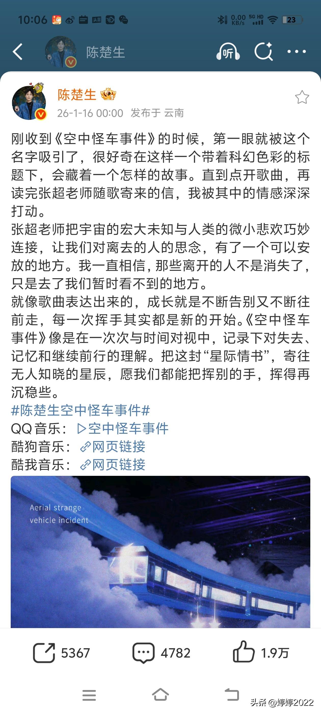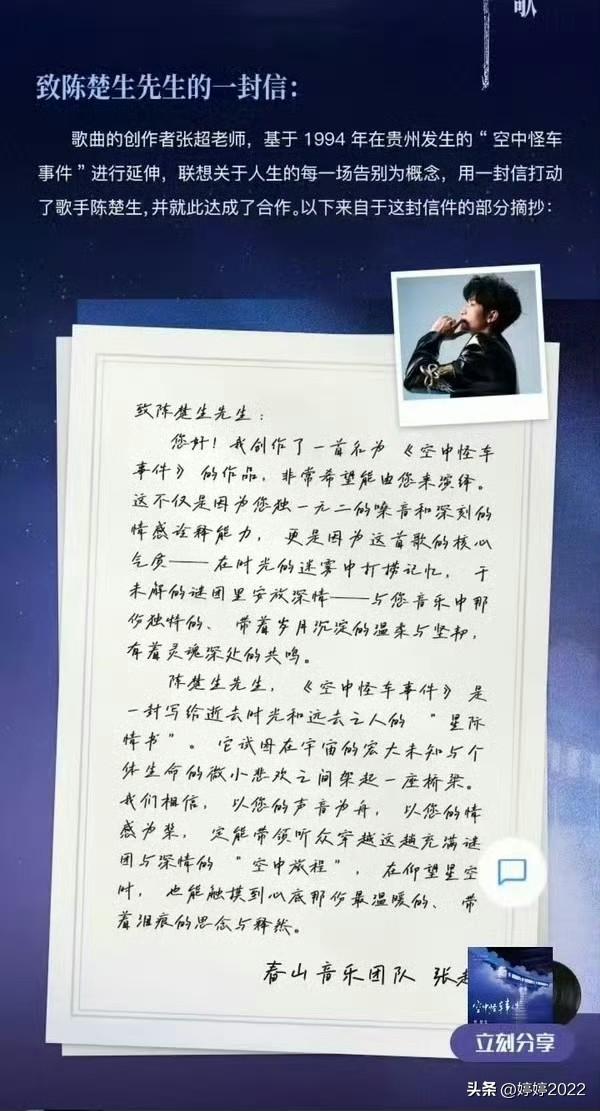 陈楚生,2026新歌! 感谢春晚《登高》《上春山》作者邀请, 从歌词来看,提到外婆的蒲扇, 作者应该是听了很多遍获奖之作, 发现这么温暖的歌曲, 就应该用陈楚生的好嗓子去表达, 他也特意提到生哥拥有温柔坚韧的气质, 作者很有诚意也特别有眼光, 其实如果不是他唱, 只看到歌名可能很多人不会点开听, 很喜欢生哥说的: 离开的人不是消失, 只是去了我们暂时看不到的地方![赞]