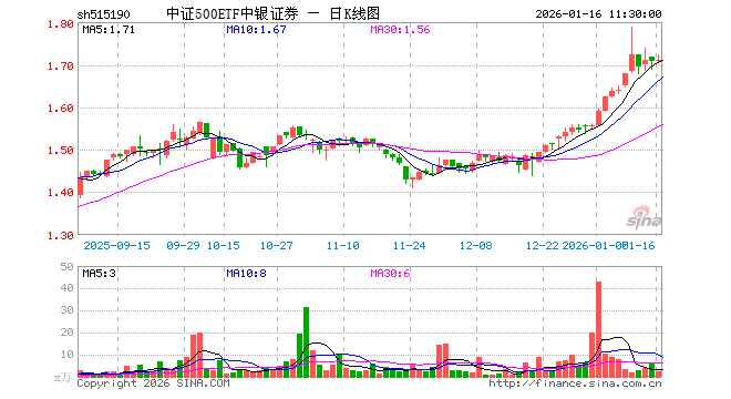 1月16日,截止午间收盘,中证500ETF中银证券(515190)涨0.12%,报1.710元,成交额361.48万元。中证500ETF中银证券(515190)重仓股方面,胜宏科技截止午盘跌0.05%,华工科技跌0.51%,芯原股份跌4.34%,先导智能跌1.03%,巨人网络跌1.41%,指南针跌0.09%,卧龙电驱涨3.92%,赤峰黄金跌1.49%,欣旺达跌0.44%,瑞芯微涨0.11%。