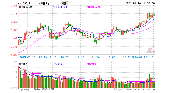 1月16日,截止午间收盘,人工智能ETF易方达(159819)跌0.24%,报1.677元,成交额7.02亿元。人工智能ETF易方达(159819)重仓股方面,新易盛截止午盘跌0.18%,中际旭创涨0.35%,寒武纪涨0.26%,澜起科技涨3.30%,中科曙光跌0.47%,科大讯飞涨0.49%,豪威集团涨1.23%,海康威视跌1.18%,浪潮信息跌1.07%,金山办公跌1.13%。