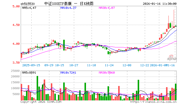 1月16日,截止午间收盘,中证500ETF泰康(515530)涨0.13%,报4.464元,成交额624.12万元。中证500ETF泰康(515530)重仓股方面,胜宏科技截止午盘跌0.05%,华工科技跌0.51%,先导智能跌1.03%,芯原股份跌4.34%,巨人网络跌1.41%,指南针跌0.09%,卧龙电驱涨3.92%,欣旺达跌0.44%,赤峰黄金跌1.49%,通富微电涨6.60%。