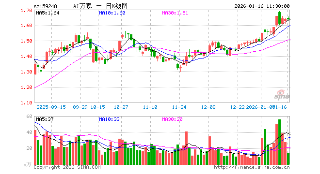 1月16日,截止午间收盘,人工智能ETF基金(159248)跌0.18%,报1.637元,成交额2325.45万元。人工智能ETF基金(159248)重仓股方面,新易盛截止午盘跌0.18%,中际旭创涨0.35%,寒武纪涨0.26%,澜起科技涨3.30%,中科曙光跌0.47%,科大讯飞涨0.49%,豪威集团涨1.23%,海康威视跌1.18%,浪潮信息跌1.07%,金山办公跌1.13%。