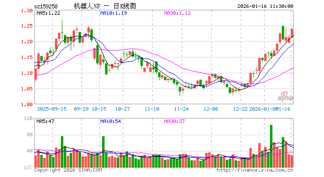 1月16日,截止午间收盘,机器人ETF南方(159258)涨2.31%,报1.239元,成交额3512.46万元。机器人ETF南方(159258)重仓股方面,汇川技术截止午盘涨1.27%,科大讯飞涨0.49%,石头科技涨0.17%,大华股份跌0.64%,中控技术跌2.69%,大族激光涨3.73%,双环传动涨4.10%,科沃斯涨2.31%,机器人涨1.54%,云天励飞涨0.05%。