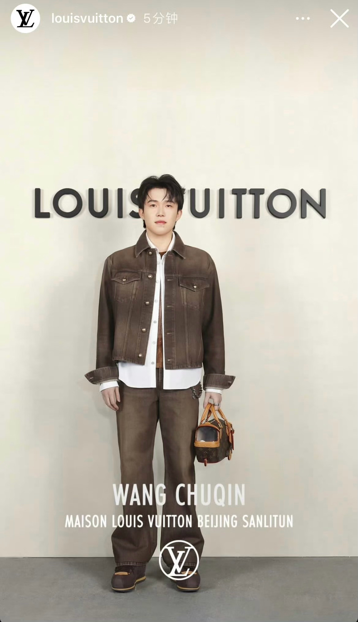 又是惊艳到路人的一天! “桃李不言,下自成蹊”你若精彩,天自安排。王楚钦lv品牌大使王楚钦棕色牛仔套装王楚钦