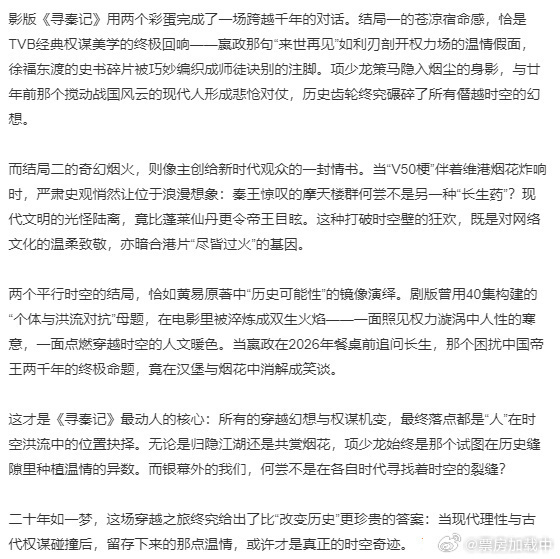 寻秦记开始走甄嬛传的流程了二十五载青春约,原班人马再聚首。从荧屏到银幕,经典穿越焕新章。笑声与泪水交织,重温的不只是回忆,更是那份跨越时空的真诚与坚守