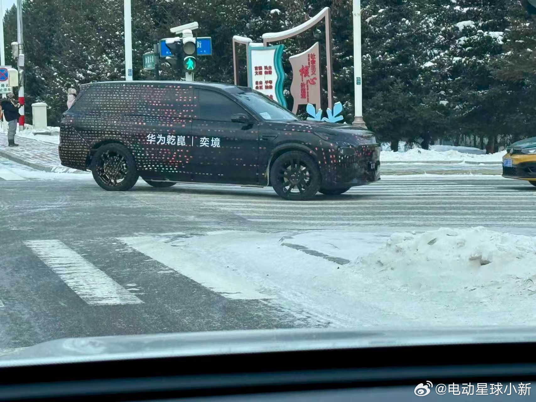 华为乾崑奕境首款全尺寸 SUV 谍照曝光目前正在漠河进行极寒测试,可以看到车身上