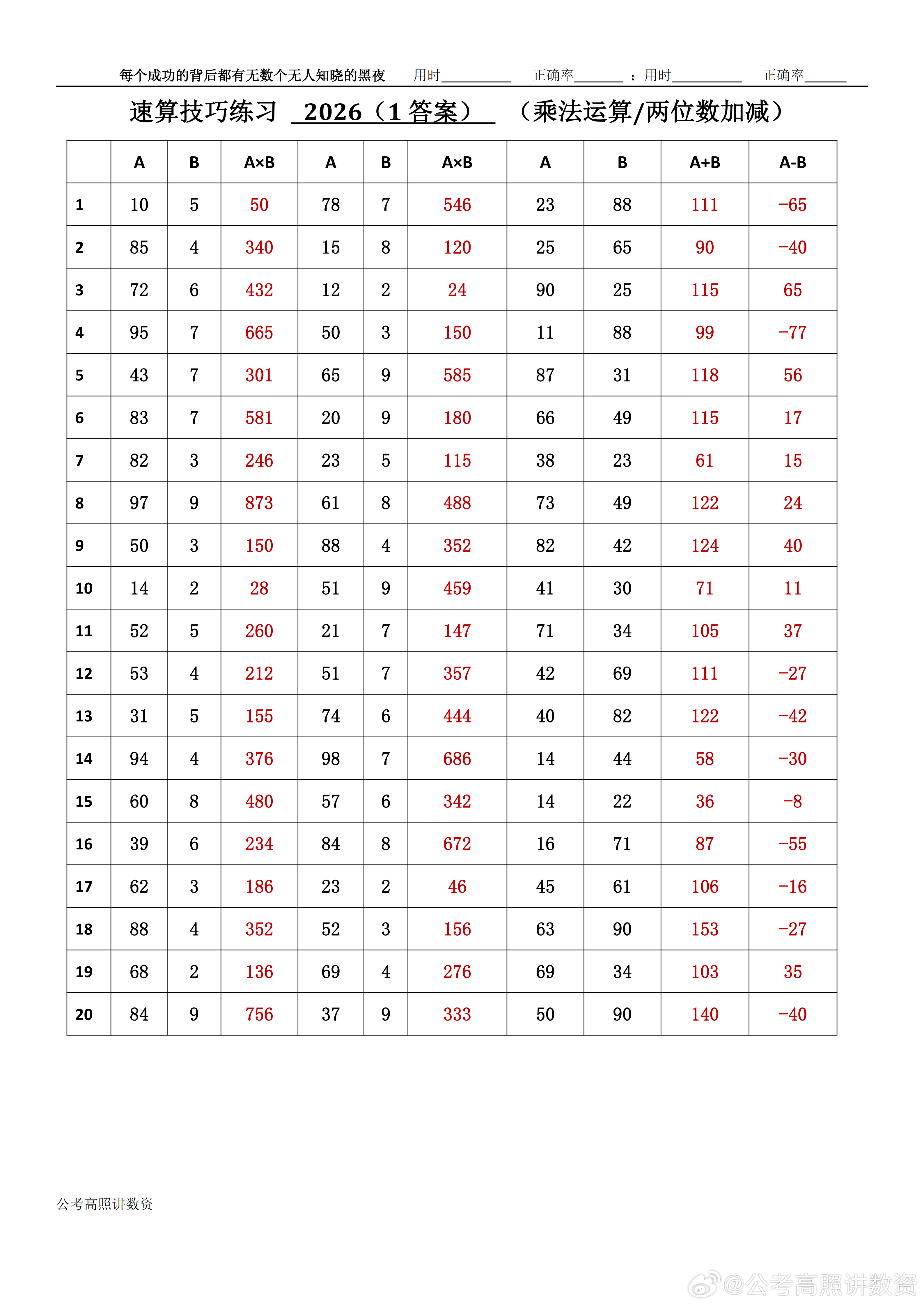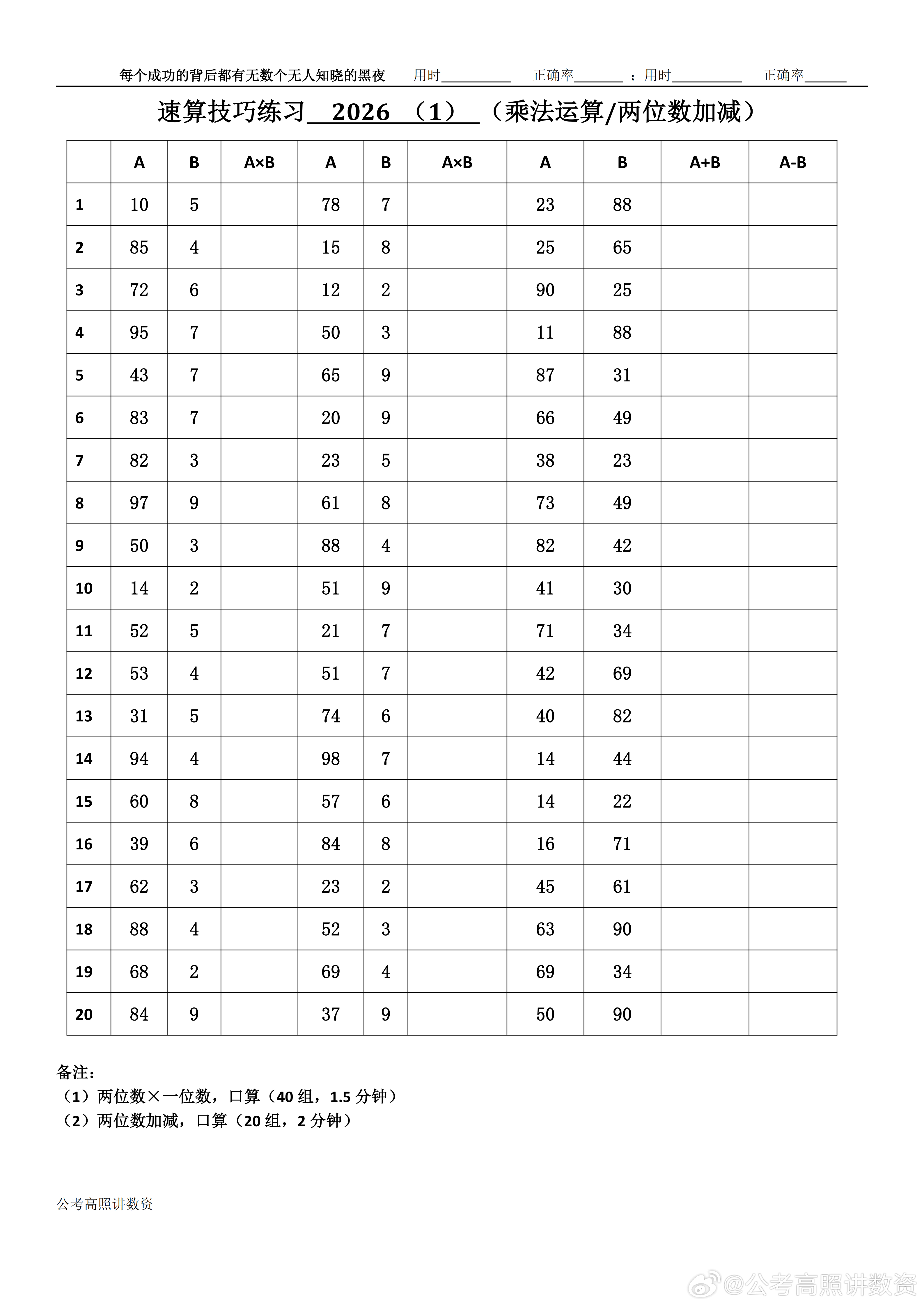跟着高照练速算决战公考 速算练习2026相信自己,努力学习。速算链接汇总:网页