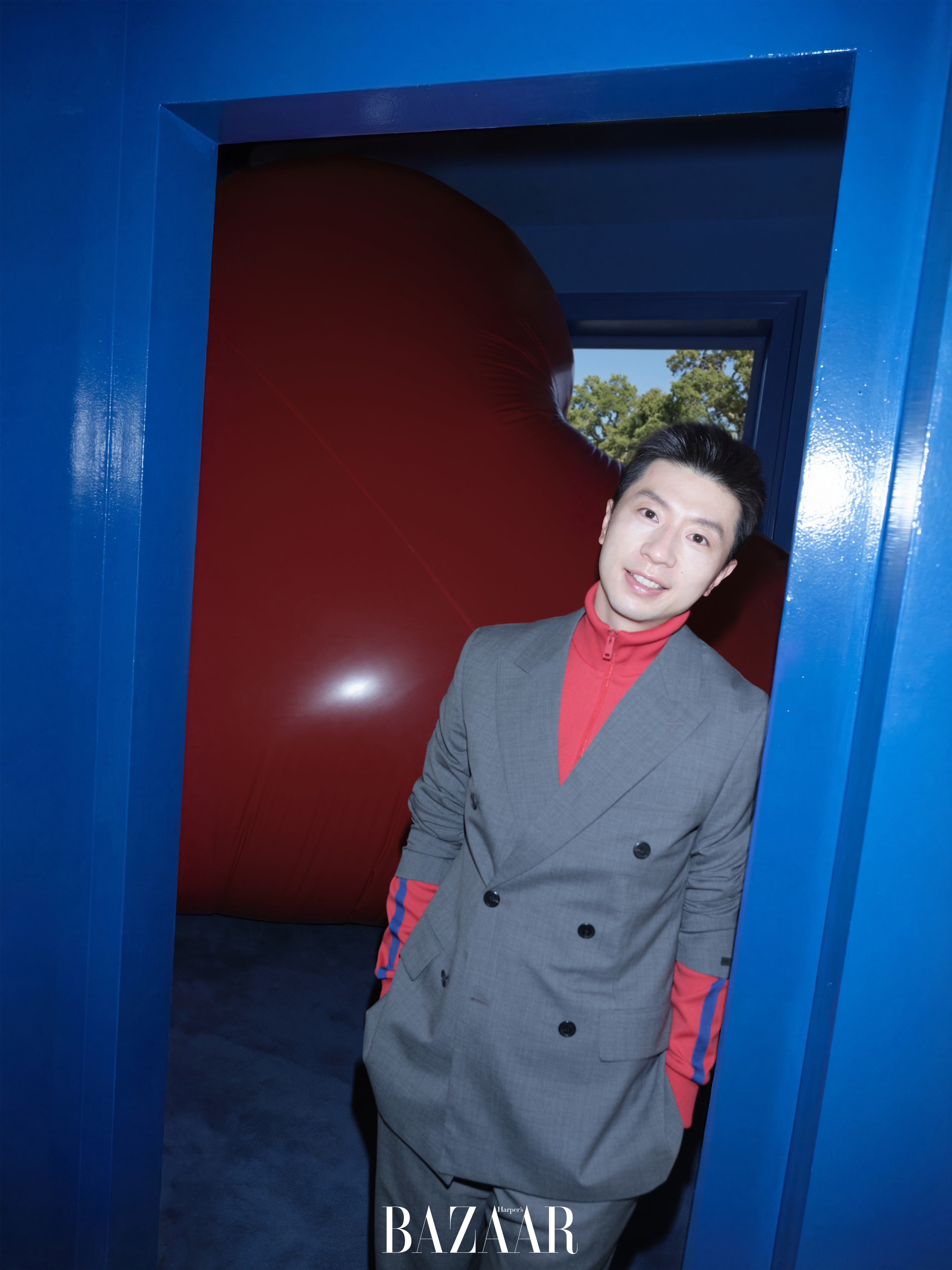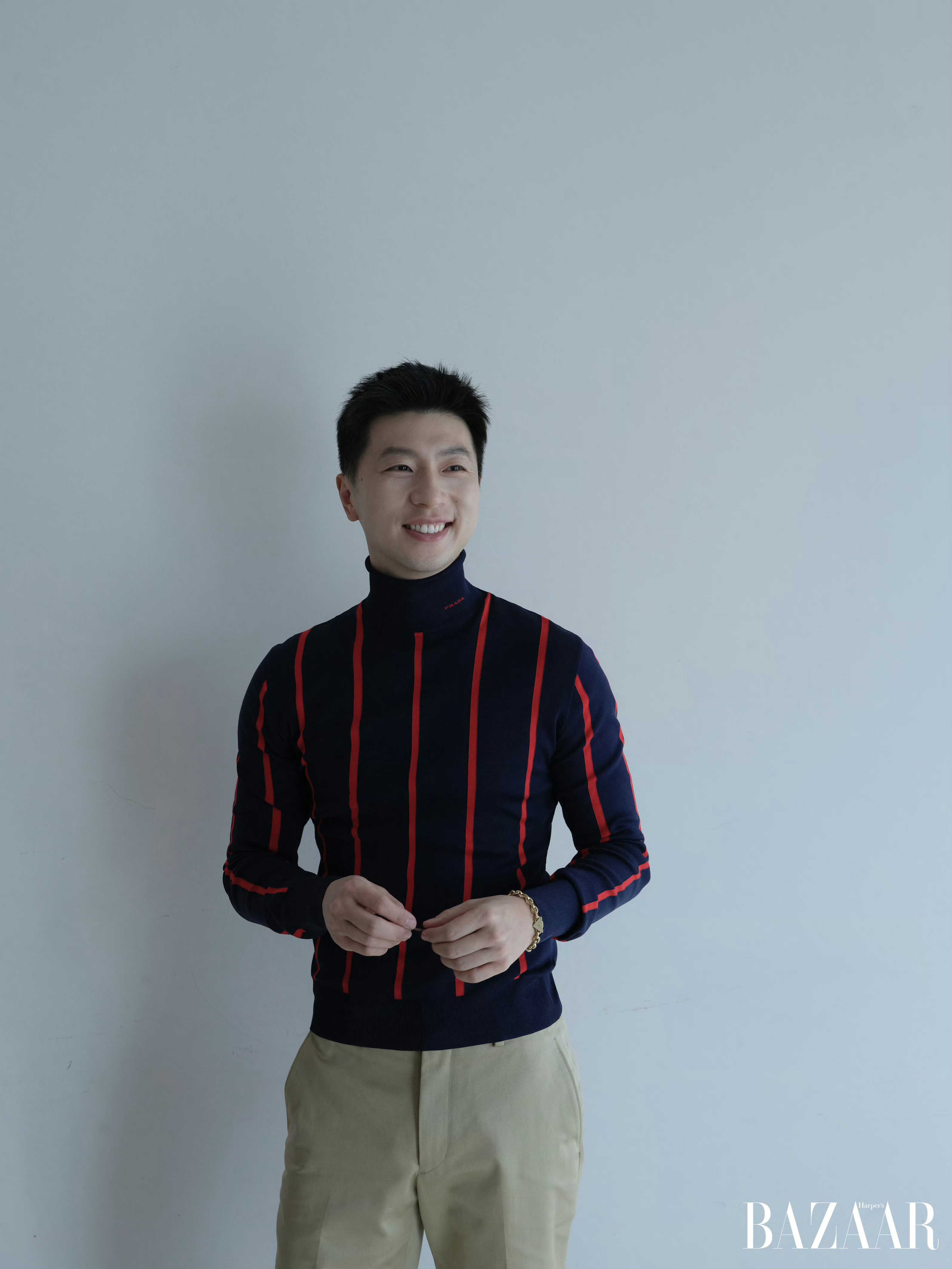 马龙 x 时尚芭莎二月刊,迎来龙队登封,身穿Prada新季系列出镜。摄影:隋