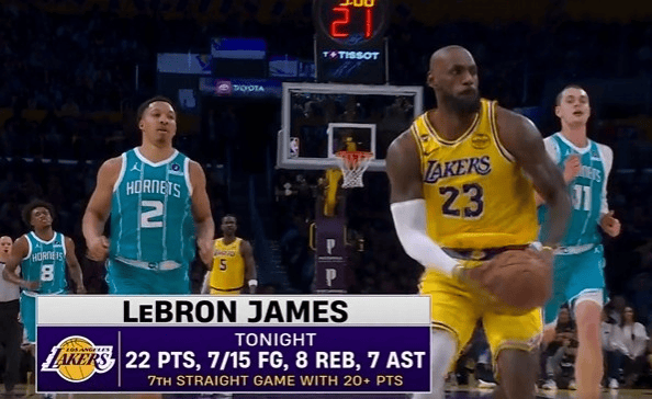 越战越勇!詹姆斯连续7场得分20+,本场已砍下22分8板7助