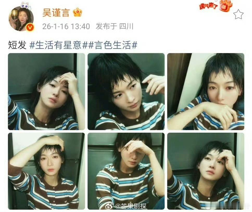 吴谨言超短发吴谨言剪了少年头哇塞,短发更显少女感了