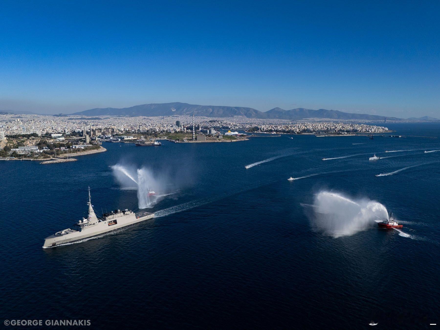 希腊海军F-601“KIMON”号护卫舰昨天抵达希腊萨拉米纳海军基地,受到盛大欢