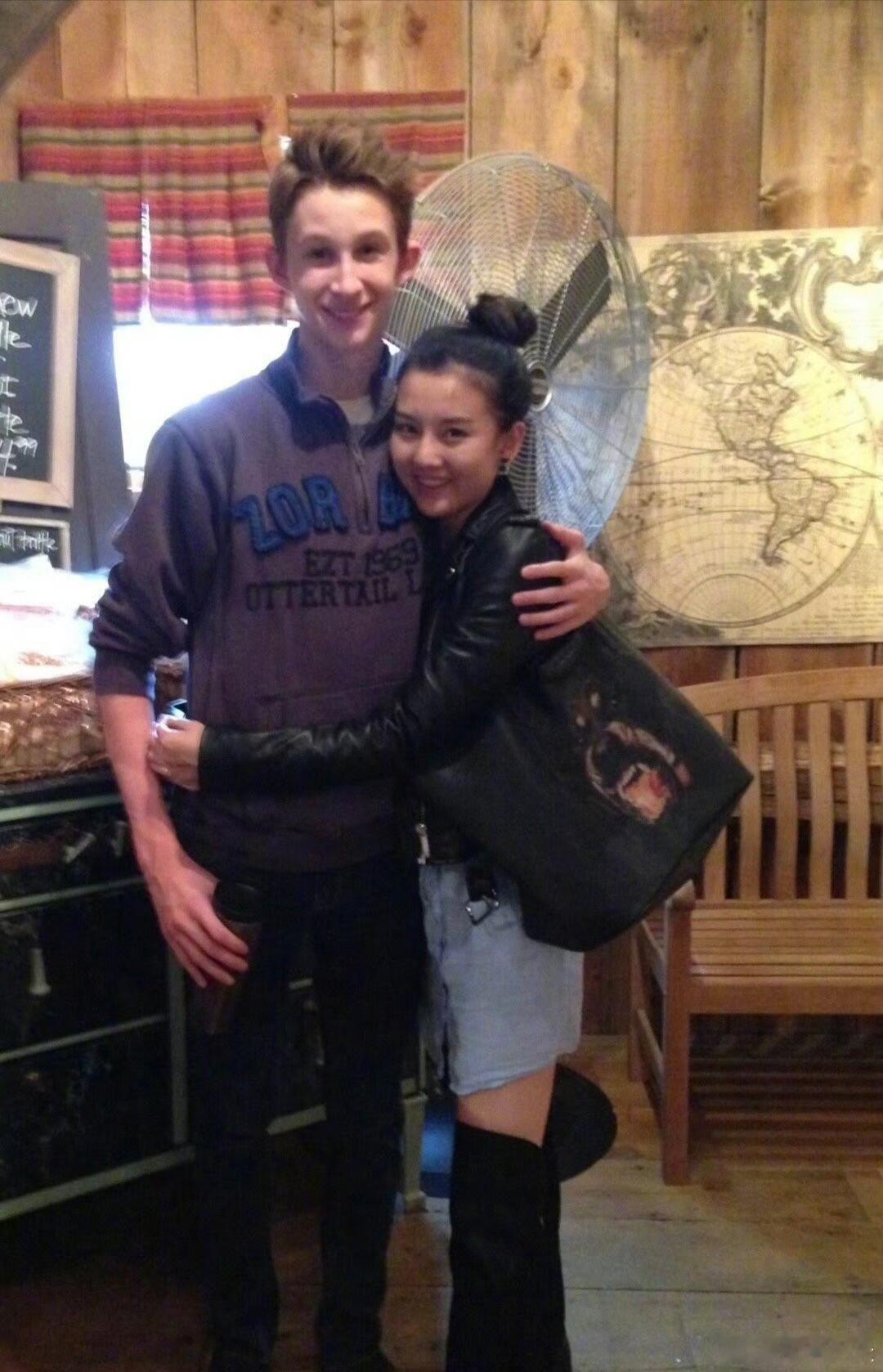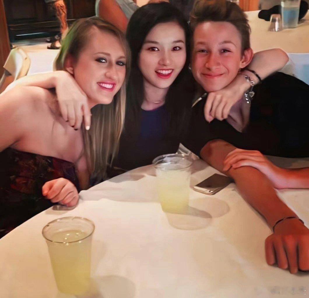 美高留学时的宋祖儿,那时还有点婴儿肥。她和寄宿家的小伙子关系蛮亲密,一个人在美国也不会太孤单