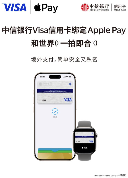 1月15日,中信银行宣布支持将本行Visa信用卡和借记卡绑定至ApplePay。持卡人无论身处境外何地,只要商户支持Visa“一拍即付”,就可以通过ApplePay进行线下或线上支付。