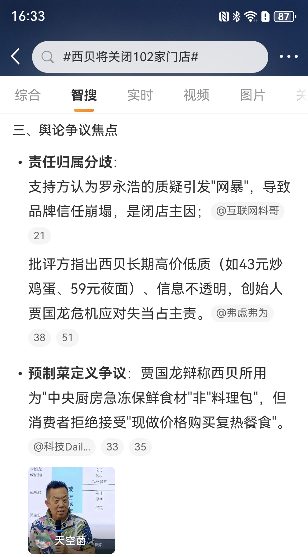 西贝将关闭102家门店 最主要问题是预制菜且不透明,价格高性价比低,以及老板咄咄逼人的态度吧!老罗揭露这些只是一个导火索。只能说,西贝和贾国龙是自找的,火气这么旺到处乱说话的老板,也没人去管管吗?我觉得西贝这次的公关灾难,百分之九十九是贾国龙的责任!