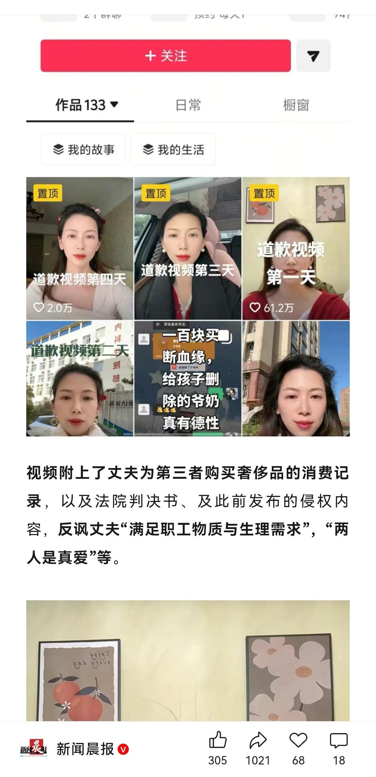 黑色幽默吗?丈夫赢了官司,却丢脸丢到全网了!法院判据妻子损害丈夫名誉,要求妻子公开道歉15天。 这位妻子在“抖音”“打卡道歉”,今天的四天,每条视频都是50万赞起的公开处刑,丈夫现在恐怕肠子都悔青了吧,这官司是不是不如不打?l 法律上,法官判得没毛病,就算被出轨后,不意味着能随便曝光隐私加辱骂。 被法院判决必须道歉,这下这位妻子的“服从判决”的反杀更绝,把消费记录、判决书全做成素材,接连几天用:“我是你的妻子某某,某某对不起”的阴阳文学大张旗鼓地宣传。 本来没有引起多少舆论关注的丈夫,和第三者的那点事知道的人还不算广泛,现在好了,“抖音”里,一边倒的支持道歉的妻子! 现在的关注度,可比当初那条曝光帖猛烈多倍。 丈夫拿着判决书,赢了官司吗?但脸面丢尽了! 妻子输了官司,按照判决天天道歉,上演成了全网追更的“出轨连续剧”,今天的四天,追更的关注一天比一天多,现在彻底变成全网笑柄。 这道歉视频,不知道丈夫还要再打官司吗?是不是又构成新的侵害名誉吗? 信息来源:新闻早报