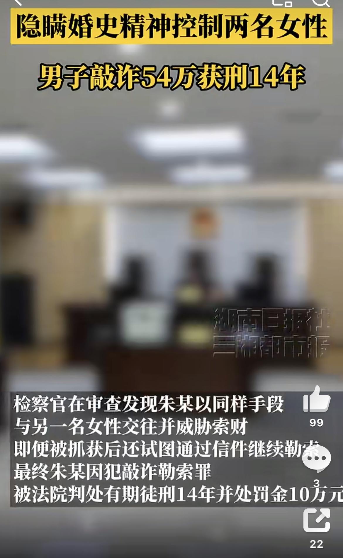 男子精神控制并敲诈2女子获刑14年:可构成什么犯罪? 长沙一已婚男隐瞒婚史精神控制2女子6年!2018年6月,已婚的朱某隐瞒婚姻状况,与被害人许华(化名)相识后迅速发展为亲密关系,随后以各种理由向对方借钱。当许华得知朱某已婚真相提出分手时,朱某以公开隐私、报复家人相威胁,持续实施精神操控与钱财勒索。 检察机关在审查中发现,许华以外,朱某还以同样手段对另一名女性实施勒索。办案人员通过逐笔核对微信账单、交叉比对微信聊天内容、录音录像、被害人陈述等证据,形成完整证据链,最终将涉案金额从初步认定的11万余元,查实核定为54万余元。男子精神控制并敲诈2女子获刑北京刑事律师律师来帮忙 1. 可构成敲诈勒索罪 前述案件中,朱某勒索他人钱财的行为可构成敲诈勒索罪。根据刑法规定, 敲诈勒索罪是指基于非法获利的目的,以恐吓行为为手段使他人交付财产数额较大或者多次敲诈勒索的犯罪。 敲诈勒索罪在客观方面的构造为:对他人实施恐吓行为,相对方因受恐吓而产生恐惧心理,且因恐惧心理而处分或者交付财产,行为人或第三人因此取得财产,被害人最终遭受财产损失。 恐吓的方式包括直接实施暴力及以暴力或其他恶害相威胁。在前述案件中,朱某以公开隐私、报复家人相威胁,对受害者实施精神操控与钱财勒索,受害者因恐惧心理交付财产,已经符合敲诈勒索罪的构成要件。 根据相关司法解释,敲诈勒索公私财物价值在三十万元至五十万元以上的,为“数额特别巨大”,对应的法定刑是十年以上有期徒刑。在前述案件中,朱某敲诈勒索2女子一共获得54万余元,属于敲诈勒索数额特别巨大,最终被判处十四年有期徒刑。 2. 亲密关系中精神虐待或可构成虐待罪 另外,笔者要提示的是,在亲密关系中,若一方对另一方实施精神控制等虐待行为,也可能构成虐待罪。 根据刑法规定,虐待罪,是采取打骂、冻饿、强迫劳动、有病不予治疗、限制自由、凌辱人格等手段,对共同生活的家庭成员从肉体和精神上进行摧残、折磨,情节恶劣的行为。 前不久,最高检明确婚前同居的情况下也可认定双方互为共同生活的家庭成员。此前,北大牟某某虐待案中,牟某某与受害者2018年确立恋爱关系后长期同居并互见家长。在此情况下,法院判决认定牟某某可成为虐待罪的主体。 另外,精神虐待达到严重程度也可评价为刑法的虐待行为。同样在北大牟某某虐待案,行为人牟因纠结受害者过往性经历,高频次、长时间辱骂其“垃圾”“肮脏”,逼迫受害者“怀孕后流产”或“切除输卵管”以换取心理平衡等。最终,受害者不堪虐待,自杀且抢救无效身亡。最终,法院认定牟某某的行为也可评价为虐待,认定其构成虐待罪。 总的来说,在亲密关系中,广大网友一定要有底线。若对方做出了伤害自己的事情,一定要及时果断切断关系,切勿让自己陷入深渊。