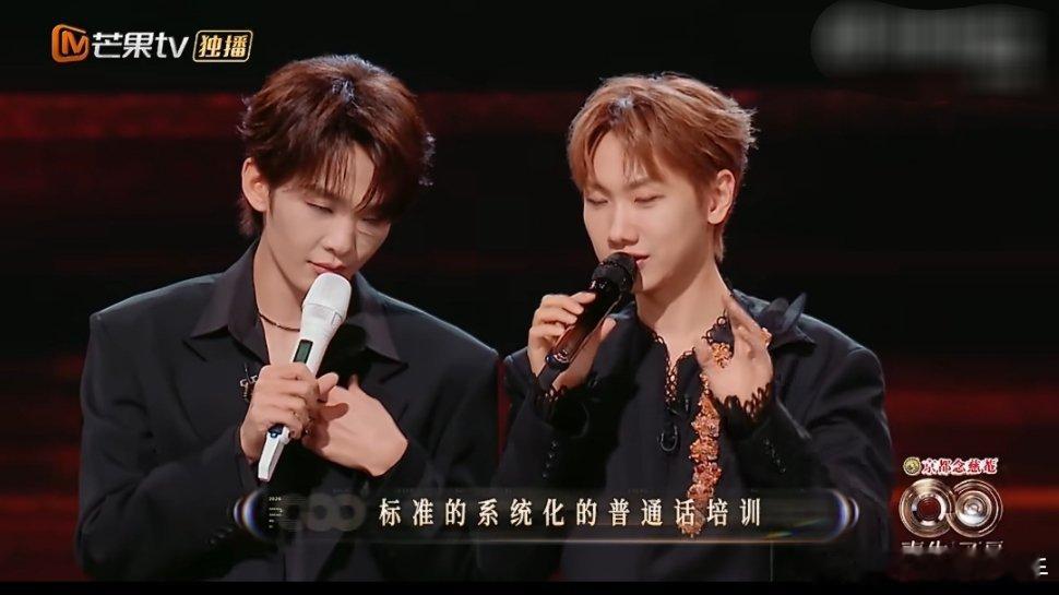 何炅问汪苏泷为什么有空蛐蛐朋友哈哈哈何老师被魔丸传染了,贴脸开大汪苏泷蛐蛐王赫野口音重。汪苏泷听到后立刻跟王赫野解释并表示会为他进行一场专门的普通话培训!声生不息声生不息华流季