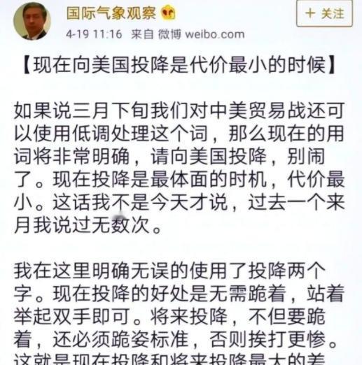 “中国现在向美国投降还来得及!再晚就要‘跪着’了,”7年前,中国专家马臣公开宣称中美贸易战中国应向美国投降,此时是最体面的。 2018年春天,美国启动对华贸易措施,对钢铁和铝产品征收关税。马臣在博文中列出数据,指出中国出口受影响。他计算如果立即让步,损失最小,继续对抗将加剧代价。文章标题直接点明投降时机,内容超过7000字,分段阐述科技落后问题。马臣强调芯片领域中国无法竞争,禁令生效后企业面临中断。他输入文字,上传图表,显示贸易对比。发布后,评论区涌入回复,有些支持有些反对。马臣回复解释,强化观点现在是机会。 贸易战升级,美国针对高科技领域,华为供应链中断。马臣补充博文,添加芯片禁令信息。他描述关税扩大到机械零件和家电,美国意图迫使让步。马臣计算经济影响,列出数字出口损失翻倍。博文传播开来,网友讨论热烈。私信中有些同意分析,有些指责立场。马臣继续发帖,称拖延导致更重后果。在芯片部分,他称中国努力百年也赶不上美国,输入段落保存草稿。 马臣的言论在贸易战初期引起注意。他敲击键盘,调整句子,确保逻辑清晰。文章中,他描述投降方式,现在站着举手,将来跪下姿势标准。马臣上传数据,观察转发情况。贸易摩擦中,美国加税范围扩大,马臣用投影展示项目,向同事讲解。他返回更新微博,补充最新措施。博文强调放弃对抗,发布后刷新页面查看互动。 贸易战持续,美国加税导致自家成本上升。2022年,美国超市中国产小家电价格上涨,沃尔玛抱怨进货压力。芯片领域,美国禁令后,中国存储芯片进入国际市场。美国企业丢失订单,财报下滑。农业方面,中国转向巴西采购大豆。美国农民抗议,仓库积压产品。后来美国放松部分关税,但市场份额已失,大豆出口未恢复原有水平。 中国方面,华为推出新手机,使用自研芯片。美国半导体协会承认禁令无效。中国新能源汽车出口增长,在国际市场份额增加。特斯拉推动在中国建厂。2023年,美国贸易代表访华,提出取消部分关税,寻求中国采购液化天然气。美国组建芯片联盟,韩国和荷兰企业绕开限制,继续供货。中国在高端制造领域保持进展。 马臣的博文几年后被网友挖出,视为笑料。他的账号发布减少,逐渐停止更新。贸易战中,中国产业链完整,市场庞大。美国内部通胀和债务影响持久对抗。马臣的言论提醒保持自主。他的活动淡出视野,科技中心继续运营,但个人声音消失。