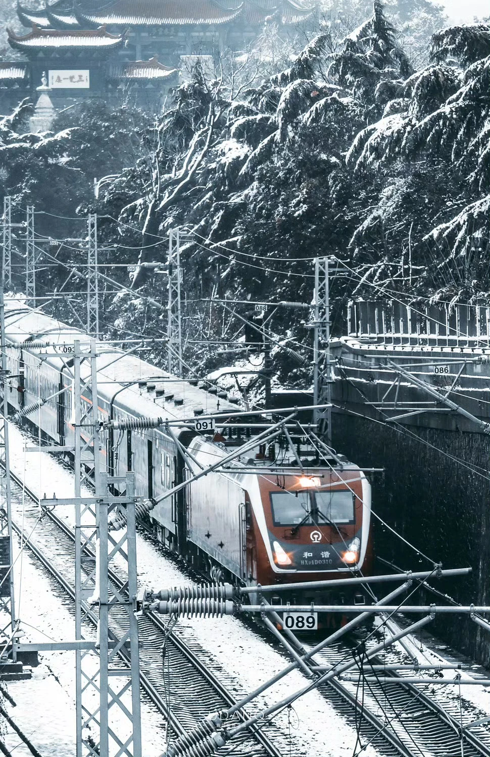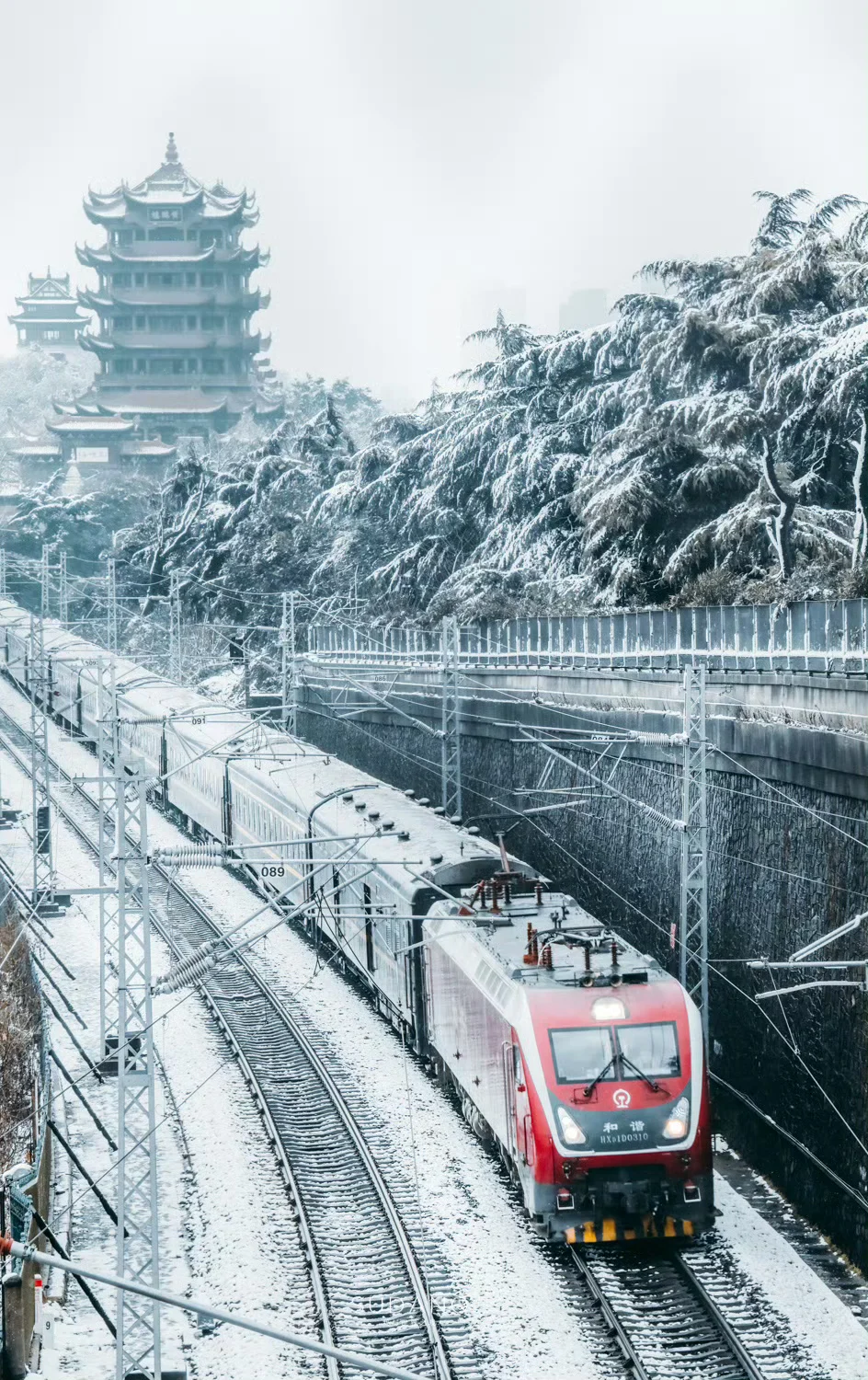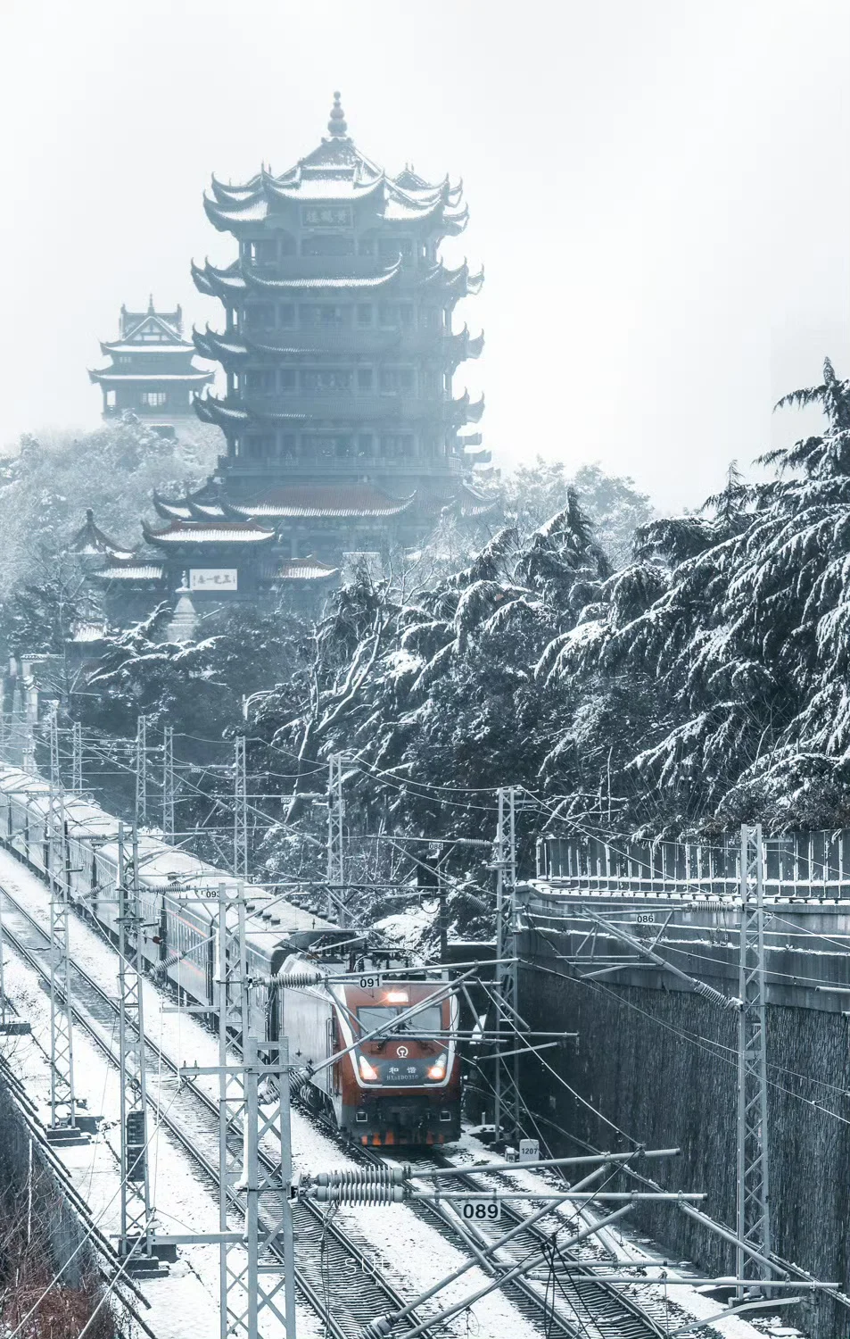 雪中的黄鹤楼与火车同框的一瞬间,感动了多少人?