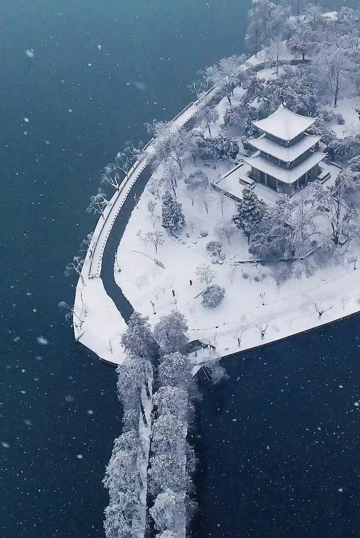 作为中国最大的城中湖(之一),东湖的美本就藏在烟波浩渺的开阔与楚辞千年的烂漫里,而雪的到来,让这份美更多了几分空灵。