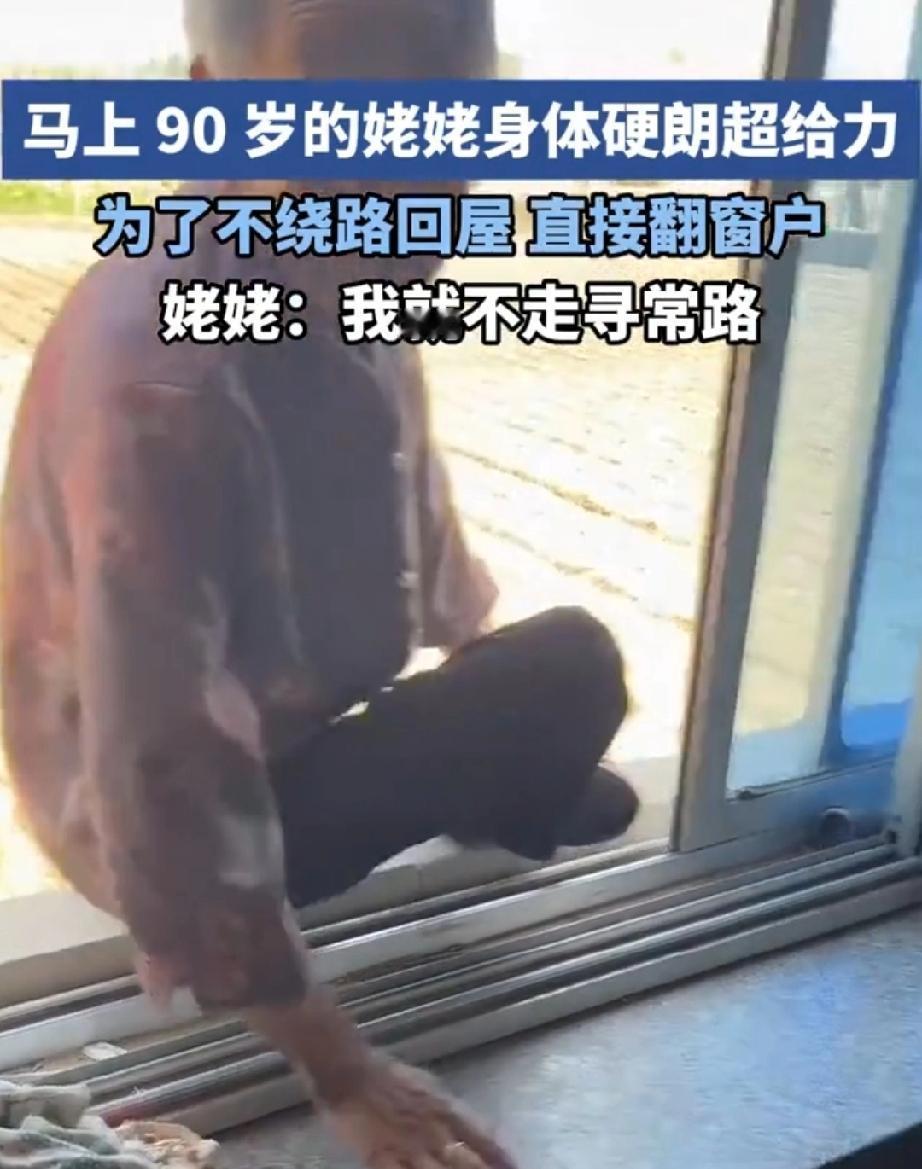 辽宁女子去乡下看望姥姥。她老人家年近90,但仍然精神矍铄,身体灵活,步履矫健,农活、家务啥都干。更让女子吃惊的,姥姥回家,不走大门,竟然翻墙爬窗回到屋里。 姥姥看见鸡在啄食地里的苗,便去驱赶。把鸡赶走了,她老人家嫌往家门走,绕路麻烦,直接往窗口回家。窗外有堵外墙,抓住墙沿一蹬腿,脚就上来了。随后,双手撑着窗台上,一使劲就回到了房间。 90岁的老太太身轻如燕,许多年轻人都自叹不如。老太太是如何做到的呢?应该得益于良好生活习惯。生命在于运动,老太太爱劳动,活动了筋骨,延缓了肌体的衰老。还有,老太太心胸开阔。女子透露,姥姥听到了不爱听的话就装聋。遇到糟心事转头就忘。只把精力放在感兴趣的事情上。心情好,是最好的良药。原来,老太太身体这么好,是因为有一个通透的心态。 如何看待辽宁一快90岁姥姥跳大墙翻窗户回家 快90岁姥姥跳大墙翻窗户回家对姥姥的印象