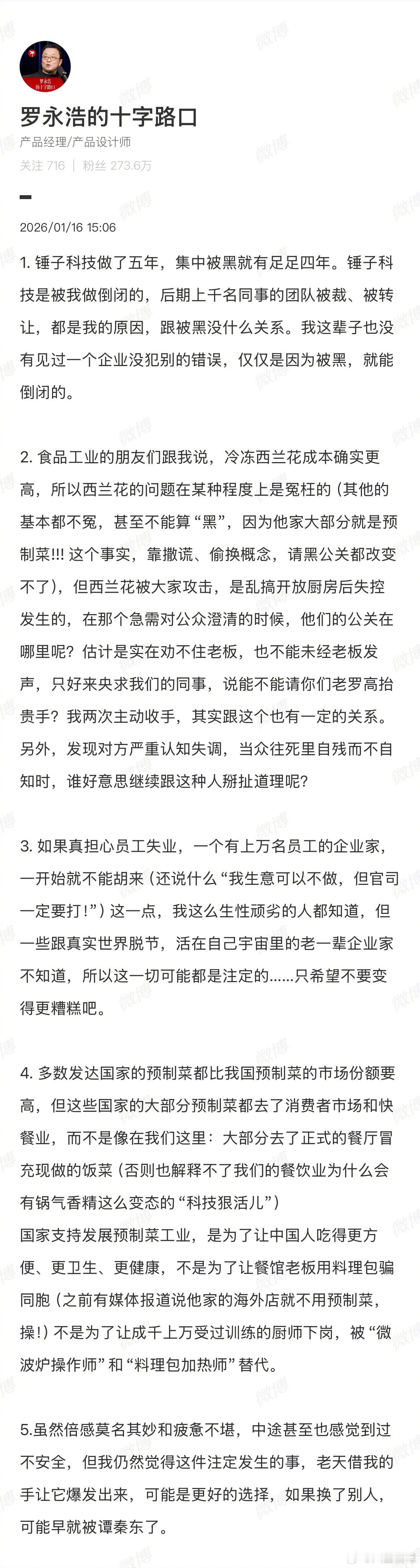 罗永浩发文后贾国龙也发文了:今晚10点,我们将就罗永浩对西贝的重大污蔑诽谤一一全