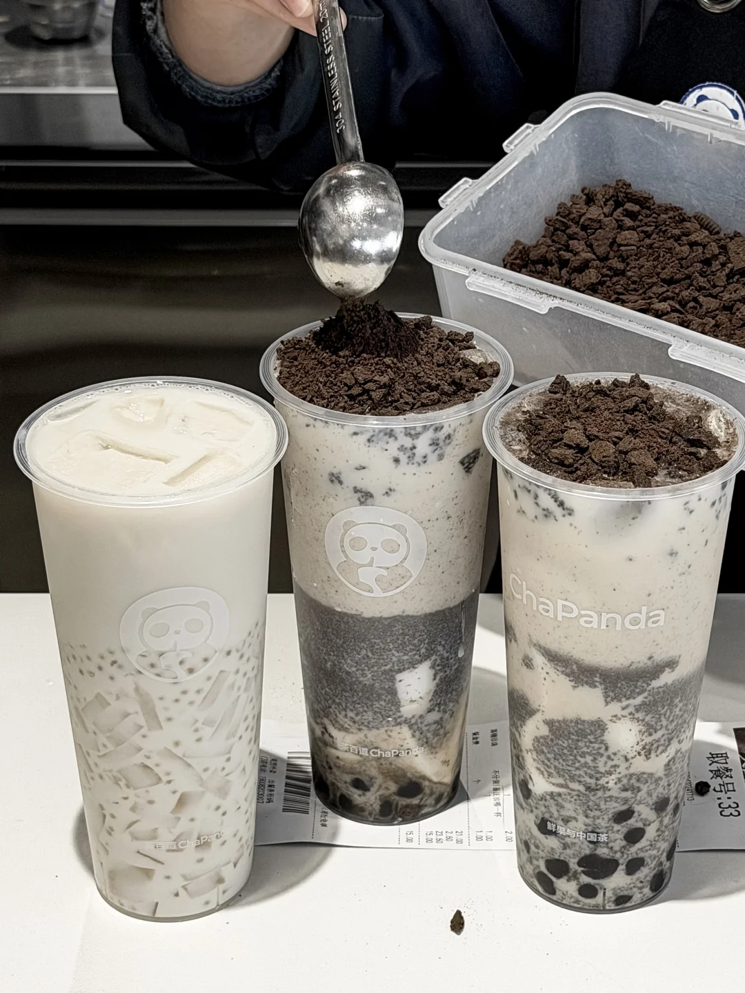 谢谢茶百道!让我的白月光重返人间!! 发现了官方没说的喝法!! 火爆全网的隐藏喝法复刻,私藏点单公式速速收藏 ✔️铁观音奶冻+不额外加糖+正常冰+珍珠+奥利奥 老朋友回来了, 3 年前的高热度隐藏喝法,你还记得嘛! 茶底干净得只有铁观音茶和奶,兰花香超足的,完美还原了3年前的味道! 奶冻+珍珠+奥利奥口感超丰富 ✔️黄金椰椰乌龙+椰果+冻冻+西米+去冰+不额外加糖 换上了更醇香的瑞麒麟茶底,口感更清爽有层次 底下还有好多椰果!再加上冻冻+西米,边喝边嚼真的吼满足。。。