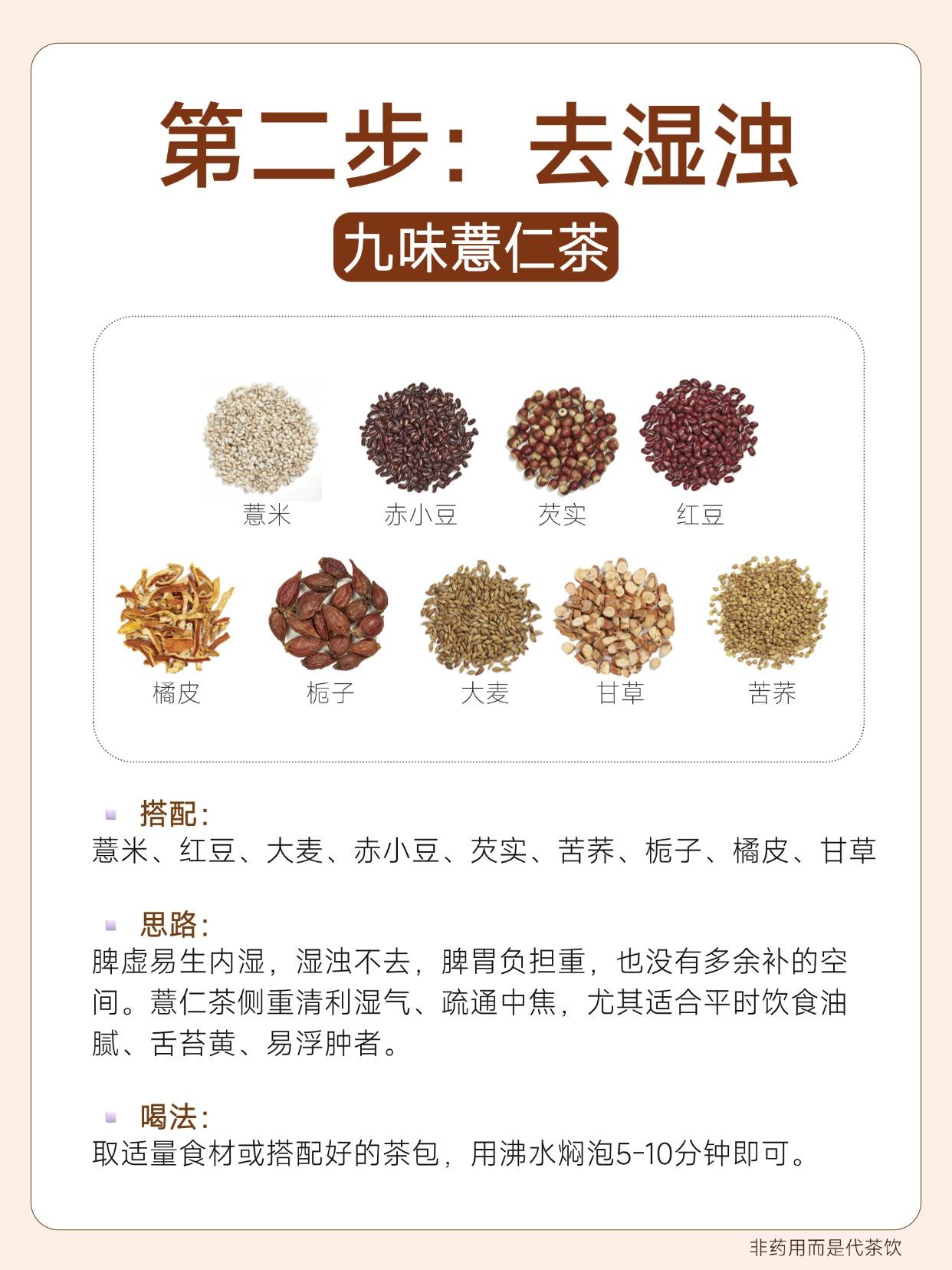 ▫️ 搭配:薏米、红豆、大麦、赤小豆、芡实、苦荞、栀子、橘皮、甘草