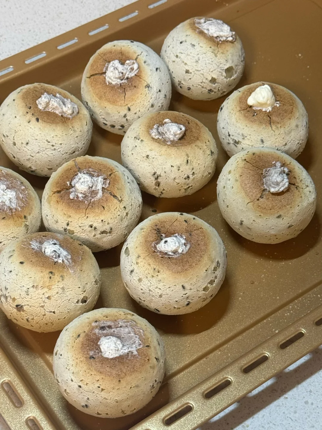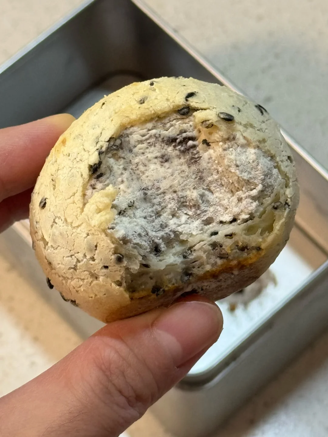5.麻薯晾凉后,各个空心,底部戳个洞,挤入奥利奥奶油,密封保存放冷冻室。