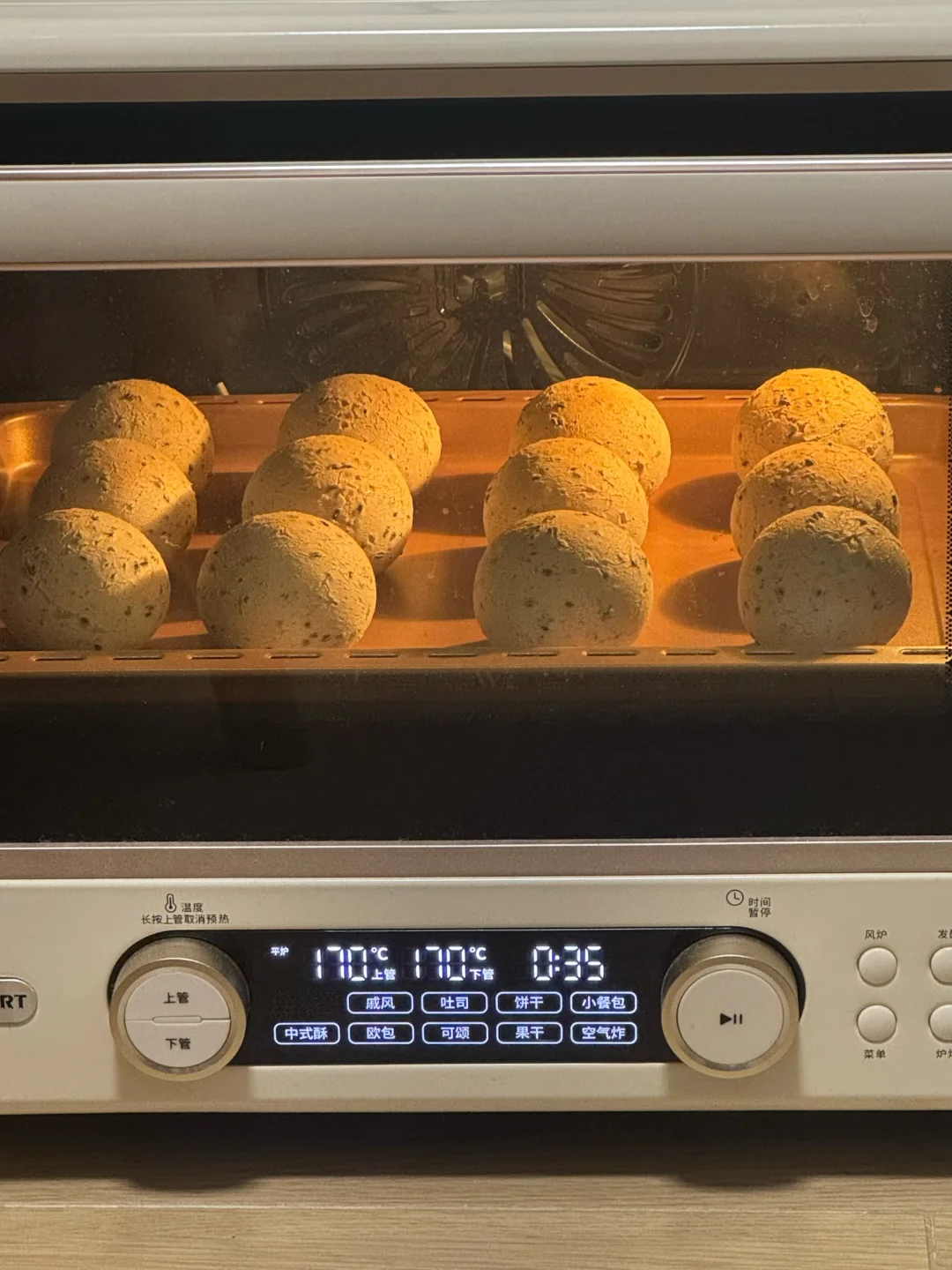 4.烤箱提前预热,烤前喷水(防止干裂)风炉模式170度烘烤35分钟,烤好后,焖5分钟再出炉。