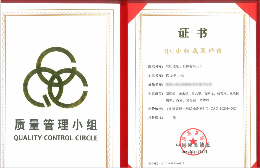 近日,中国质量协会公布年度质量管理小组(QC小组)成果等级评定结果。欣旺达提报的质量改善课题成果,从全国各行业众多优秀项目中脱颖而出,荣获QC小组成果评价一等奖。