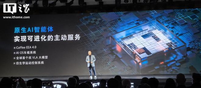 智能化方面,该平台搭载汽车领域首个原生AI智能体ASL2.0,实现可进化的主动服务,包括CoffeeEEA4.0、AIOS车载系统、全球首个双VLA大模型、仿生学运动控制系统。