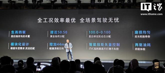 IT之家从发布会获悉,该平台支持FCEV氢燃料系统、ICE高效燃油系统、BEV纯电动系统、HEV油电混动系统、PHEV插电混动系统。平台支持前后轴双电机布置、模块化设计、智能扭矩矢量控制等。