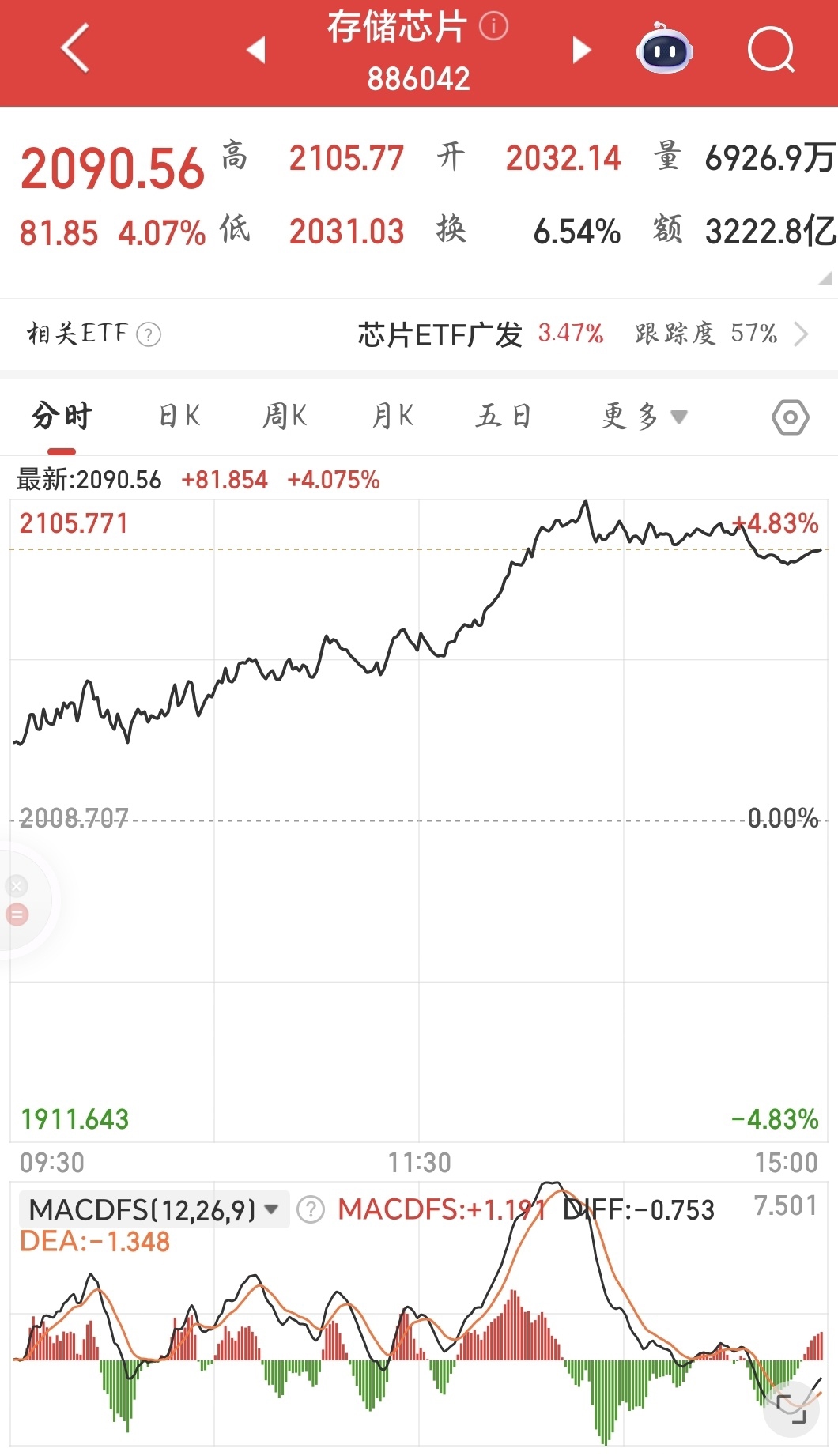 存储芯片板块逆势上扬。
