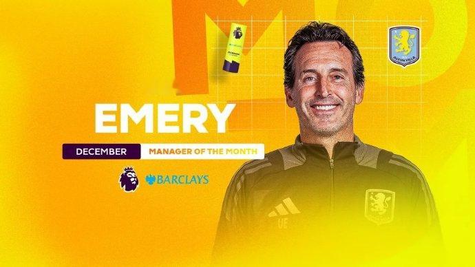 埃梅里获英超12月最佳主帅 英超官方公布了12月的英超月最佳主帅,阿斯顿维拉主帅埃梅里当选。埃梅里在12月击败过瓜迪奥拉和阿尔特塔,带领维拉5胜1负。