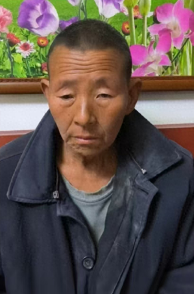 受助者特征:穿蓝色夹克、灰白色裤子、白色运动鞋